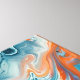 This is a stunning, high-detail abstract fluid artwork that captures the aesthetic of marbling and poured acrylics. The dominant color theme blends cool, intricate shades of teal, turquoise, and dusty blue with striking pops of saturated orange and tangerine. White and creamy-grey tones flow throughout, creating a sense of luminosity and depth.