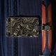 Features an abstract marbled gold design on a black background. Personalize with a name on the front, and a name and address on the back.