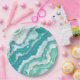 Soft teal, mint and jade with white - in a summer beach-inspired repeating motif.