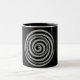 Entertain in style with this stunning coffee mug designed in the style of Marcel Duchamp's Anémic Cinéma film. The design comes from the 1926 Dada/surrealist experimental film by Rrose Sélavy (the alter ego of Marcel Duchamp) made in collaboration with Man Ray and Marc Allégret. Duchamp made Anémic Cinéma by filming nine rotating cardboard disks with spirals drawn on them and ten rotating disks inscribed with verbal puns. Alternating on screen, these disks turn in different directions and at varying speeds. The disks with spirals seem to pulse in and out, as if they were three-dimensional, while those with puns must be read, which emphasizes the flatness of their surfaces. The two words of the film’s title are both an anagram and a near palindrome, being readable almost identically forward and backward.