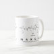 Marcel spelled out in amino acids as M A R C E L (Methionine Alanine Arginine Cysteine Glutamic acid Leucine) on a mug for the scientist in you.