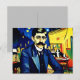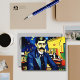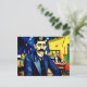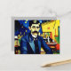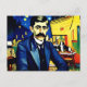 This postcard features vibrant and imaginative artwork. Picture this: Marcel Proust, the renowned French writer, looks dapper in his stylish suit as he lounges on a cafe terrace in Arles.Featuring a Van Gogh-style Starry Night background,.