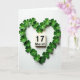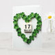 This card features a cream ceramic tile centered on a white background, with the date “17 March” printed in strong black type as the main focus. A heart shape made from a single continuous chain of green clover leaves wraps around the tile, each leaf showing a neat three-lobed form in slightly varied shades of green ☘️. The clovers sit close together like they’re holding hands, giving the heart a gentle, affectionate look without needing any extra decoration. Soft, diffused light falls across the scene, creating faint shadows that lift the leaves and make the heart feel almost touchable 💚. The text sits neatly in the middle of the tile, aligned to read clearly, and the dark lettering stands out against the pale surface. The setting stays simple and airy, letting the greens and the heart shape carry the romantic, lucky theme through the way the leaves curve toward each other. A few delicate shadows trail along the lower edges of the clovers, and the heart’s outline remains crisp against the bright white space.