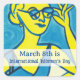 Abstract art in blue and yellow. Woman in sunglasses. March 8th is International Women's Day.