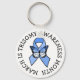Trisomy awareness button with blue awareness ribbon and butterfly.