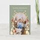 A festive sage green colored Easter greeting card with a personalized photo and greeting alongside vintage artwork of spring flowers and 2 bunny rabbits playing musical instruments. Further customize this card with an additional longer greeting in the inside.