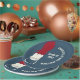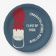 Create personalized party supplies for graduation parties and other special events. These custom paper plates are perfect for marching band members and feature a simple illustration of a marching band hat with feathers on the top in cream or ivory and dark red, set against a navy blue background. Your text appears in bold cream colored lettering.