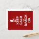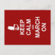 A new spin on the iconic British poster, this design features the famous "Keep Calm and..." phrase, but finishes it with "March On". The marching band reference is further enhanced with a graphic illustration of a shako - the iconic headwear of the marching arts. Personalize this unique postcard with your own message - use it to announce section meetings, band parties or just to inspire your marching band friends.