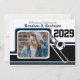 Plain white envelopes are included with paper invitations and will come to fit the invitation size you select. If you don’t need the envelopes, you may choose to not receive them by selecting the dropdown below "Envelopes" and choosing "None." If you’d like to have a design on your envelopes, you can browse all of these available envelopes to find the design that complements your Marching Band Trombone Graduation Photo Blue Invitation.