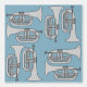 Gray marching baritone horns in a crosshatch pattern against a blue background is a unique musical instrument design for low brass musicians, music teachers and school students in marching band.
