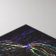 Photograph altered to a glowing outline abstract of a uniformed female marching band member in profile, holding her feathered hat in one hand and a clarinet in the other.