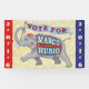 Vote Marco Rubio for President 2016 Republican elephant political design : walking elephant waving a flag with stripes and a star : shades of red, off-white and blue with a gray elephant : beige starry background : 2016 Presidential election : Republican : campaign merchandise for Republicans : GOP : politics : political : United States of America : candidates : "2016" appears vertically down the sides of the banner