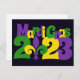 Fun shirt with "Mardi Gras 2023" in Mardi colors" purple, green, and gold with a fleur-de-lis for the 0.
