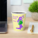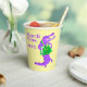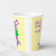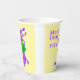 These paper cups have a purple Mardi Gras alligator playing a green accordion and wearing yellow beads. Text says "Mardi Gras 20XX." Update for your year.