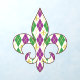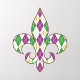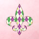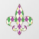 Bright purple and green diamonds overlaid with gold-toned diamond outlines and fleur de lis bring to mind the revelry and celebrations associated with a New Orleans Mardi Gras, while a cream base adds a touch of refinement to this argyle pattern. The pattern is masked behind the silhouette of a fleur de lis to add a fun final note.