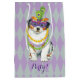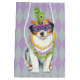 Cute Australian Shepherd puppy, dressed in festive feather mask and beads, ready for fun on Mardi Gras or at any other time. Great to hold a gift for your family and friends who love Aussies.