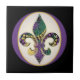 ARTegrity's original Fleur de lis filled with Mardi Gras beads set in an oval on apparel, accessories, home decor and keepsake gifts for the Krewe or for your Mardi Gras festivities, parties and parades. Happy Mardi Gras ya'll