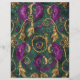 This Mardi Gras themed scrapbook paper features an opulent and vibrant design that captures the essence of the festive celebration. The front side of the paper is adorned with an intricate pattern of swirling gold beads, ornate golden leaves, and rich purple feathers set against a deep green background. The design is further enhanced with small purple and gold accents, creating a luxurious and festive feel. This paper is perfect for anyone looking to add a touch of elegance and festivity to their scrapbooking projects, party invitations, or decorative crafts. The reverse side of the paper is a solid gold color, providing a complementary backdrop that enhances the lavish design on the front. This dual-sided paper offers versatility and a touch of sophistication, making it ideal for a variety of creative uses.
