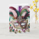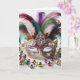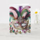 A vibrant masquerade mask is adorned with colorful feathers and intricate jewels, exuding an air of festivity and elegance.