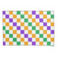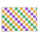 Seamless checkered pattern featuring alternating squares of purple, gold, green, and white.