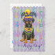 Invite your friends to be Party Dogs and celebrate Mardi Gras with this cute little Doberman Pinscher Puppy, dressed in festive mask, jester hat and beads. Get ready for fun at a doggone good party. Laissez les bon temps rouler!