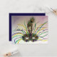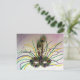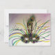 Watercolor painting with slight pastel touches of a feather Mardi Gras mask. The uses the traditional Mardi Gras colors of purple, green, and gold. Two peacock feathers top off the mask. The front of the invitation card notes "Mardi Gras". The back of the invite cards has "Laissez les bon temps rouler!" as a greeting and space for you to add you personalized carnival custom party invitation details. All words on the card can be personalized, as needed.