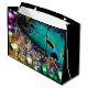 Photograph of a Carnival feather mask with colorful Mardi Gras bead throws. The colors of Mardi Gras (gold, green, purple) are featured in the large bead throw framing the photo. The each side of the party favor gift bag notes "Mardi Gras" but can be personalized with your carnival custom party message greeting. Make special Carnivale Mardi Gras party favor gift bags with your own text and images using the "Customize It" option for personalized holidays and special life occasions holiday themed art gifts!