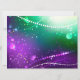 Bright purple and green background with shiny confetti. Festival Mardi Gras.