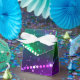 Bright purple and green background with shiny confetti. Festival Mardi Gras.
