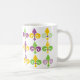 This mug has a Mardi Gras design of fleur de lis lined across the design with different design in them.