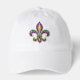 Perfect to wear to your Mardi gras parties, this hat is shown in white with a Fleur De Lis print.