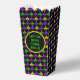 Celebrate the spirit of Mardi Gras with our Mardi Gras Fleur de Lis collection featuring the iconic Fleur de Lis pattern in vibrant colors of purple, green, and gold. The Fleur de Lis pattern embodies the timeless beauty and regal charm associated with French heritage and the celebration of Mardi Gras. The collection showcases the traditional Mardi Gras palette of purple, green, and gold, symbolizing justice, faith, and power. These bold and lively colors are sure to make a statement. Personalize your piece with custom text or leave as is. This little favor box works great as a popcorn holder or favor box!