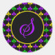 Mardi Gras Fleur de Lis Pattern Custom Monogram Classic Round Sticker