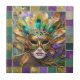 Mardi Gras Gold and Green Peacock Feather Mask Ceramic Tile