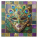 Mardi Gras Gold Ceramic Peacock Feather Mask Tile