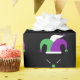 Wrap your Mardi Gras gifts in style with this festive wrapping paper! Featuring a lively pattern of colorful jester hats in classic Mardi Gras purple, green, and yellow on a striking black background, this wrapping paper adds the perfect touch of carnival flair to any celebration. It's sure to make your gifts the life of the party!