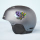Cute ladybug with purple wings ready for Mardi Gras with a colorful mask and beads.