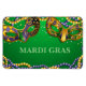 This flexible magnet is shown in a festive Mardi Gras mask print.