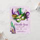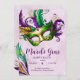 Festive New Orleans Mardi Gras themed party favor in green gold and purple, the traditional colors of Fat Tuesday carnival. Perfect invite for NOLA themed parties. Wavy faux glitter design.