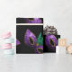 Festive Wrapping Paper Beautiful Mardi Gras mask in Passion Purple with Yellow Golden Embellishment and Emerald Green feathers on black. We use Photo of sparkles glitter!