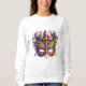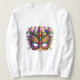 This women's sweatshirt is shown in white with a fancy Mardi Gras mask art print.