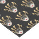This table runner is shown with a black background color with a festive Mardi Gras festival mask print design.