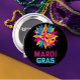 Show off your Mardi Gras spirit with this festive button featuring two classic Mardi Gras masks and the bold text "Mardi Gras." Perfect for parades, parties, and celebrations, this accessory adds a fun carnival vibe to any outfit!