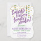Let the good times roll! This colorful invitation boasts a festive Mardi Gras theme. Fun script typography in purple faux-glitter spells out the words 'Laissez Les Bons Temps Rouler' (Let the good times roll) accented by gold glitter-look confetti and strings of beads in purple, green and gold. Customize the front with your party details using the provided text templates. The reverse side is printed with an all-over harlequin pattern in shades of purple and is accented with a gold fleur de lis. Visit my store for other matching party accessories.