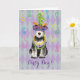 Cute Miniature Schnauzer Puppy, dressed in festive feather mask and beads, ready for fun on Mardi Gras or at any other time. Great gift for yourself and your Schnauzer-loving family and friends.