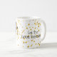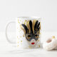 This coffee mug is shown with an image of a festive Mardi Gras mask over golden confetti with Text of "Let the good times roll'.