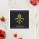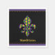This paper guest napkin is shown in a festive Mardi Gras Fleur de Lis print.
