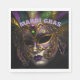 This paper napkin is shown with a festive Mardi Gras mask print.