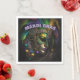 This paper napkin is shown with a festive Mardi Gras mask print.