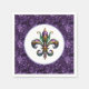 This paper napkin is shown in a festive Mardi Gras Fleur de Lis print.